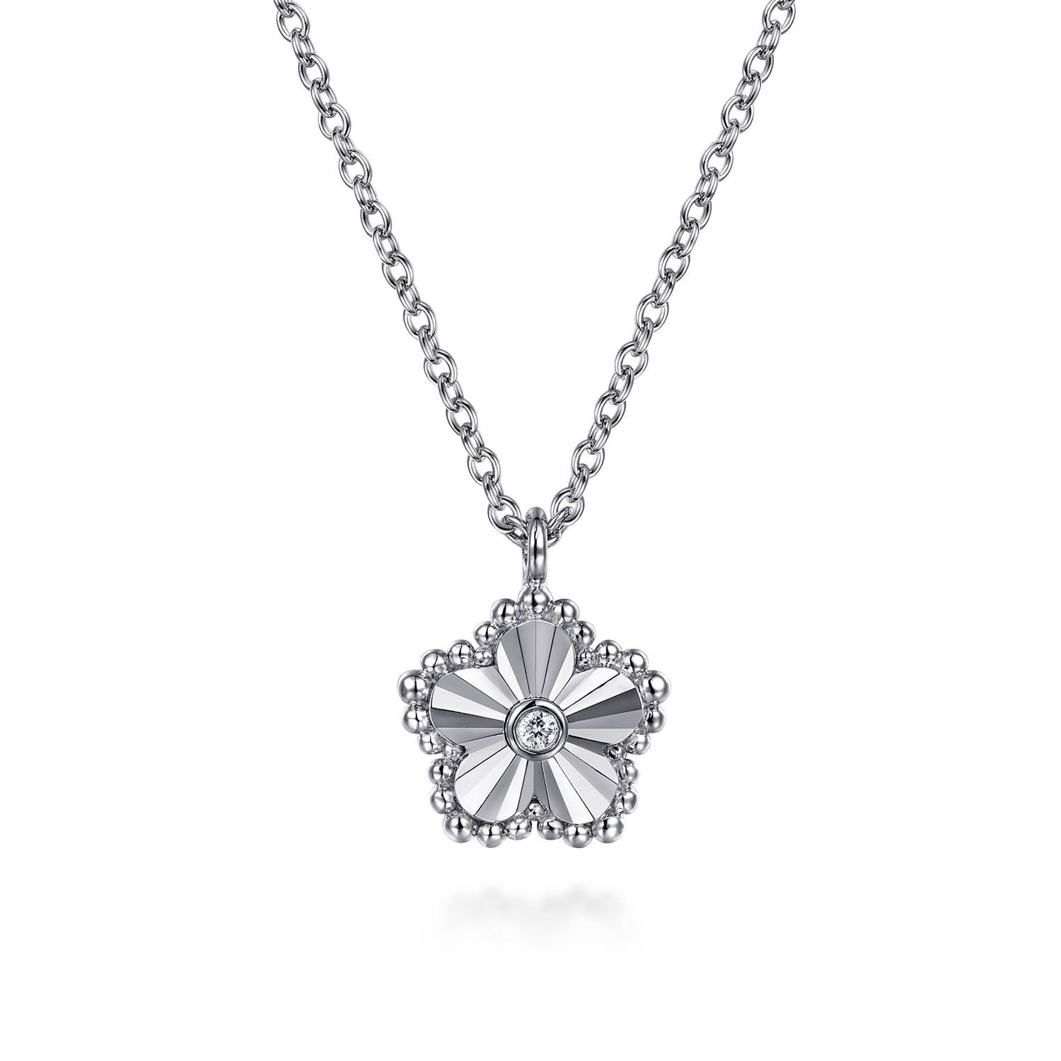 (215) 345-6277SS Flower Pendant with Diamond